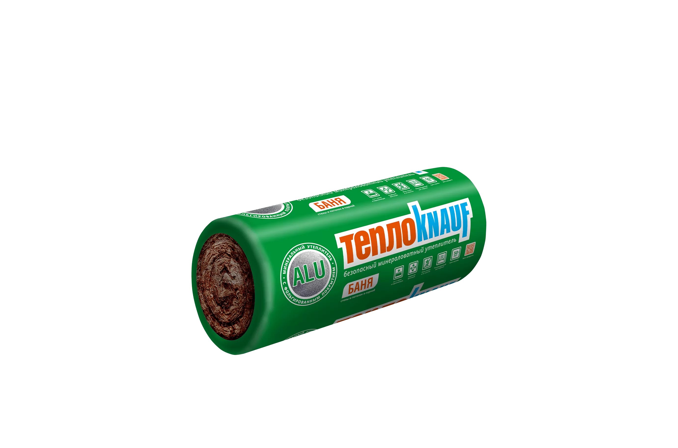Минвата с фольгированным слоем поставляется в рулонах, которые удобно хранить. После вскрытия упаковки материал легко принимает первоначальную форму. При соблюдении правил монтажа минвата «КНАУФ» для бань и саун служит до 50 лет и более.
